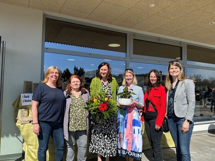 Prof. Romana Reisinger, BEd. und das Team der Bücherei mit Büchereileiterin DI (FH) Hannelore Kofler freuten sich über viele prominente Gratulant:innen wie Bezirkshauptmann Mag. Manfred Hageneder, Bildungsdirektor Mag. Dr. Alfred Klampfer und LHStv.in Christine Haberlander.
