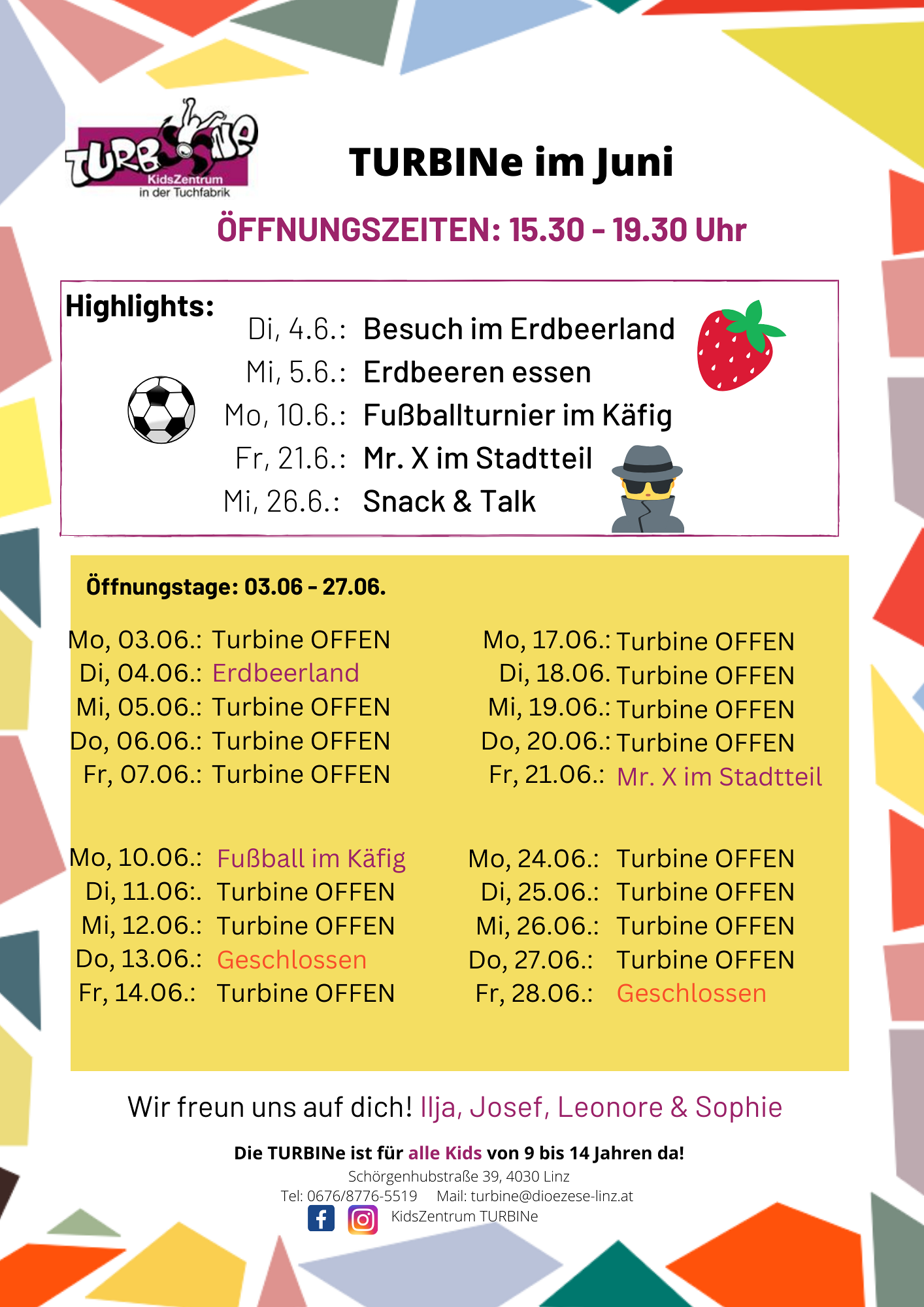 Monatsprogramm Juni Wir nähern uns den Sommerferien - aber bis dahin gibt es noch spannende Programmpunkte! mehr: Monatsprogramm Juni