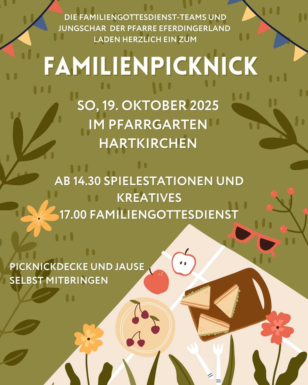 In diesem Bewusstsein laden Katholische Jungschar und die Teams der Kinder- und Familienliturgie der Pfarre EferdingerLand zu einem Familienpicknick, am Sonntag, 19. Oktober 2025 in den Pfarrgarten Hartkirchen.