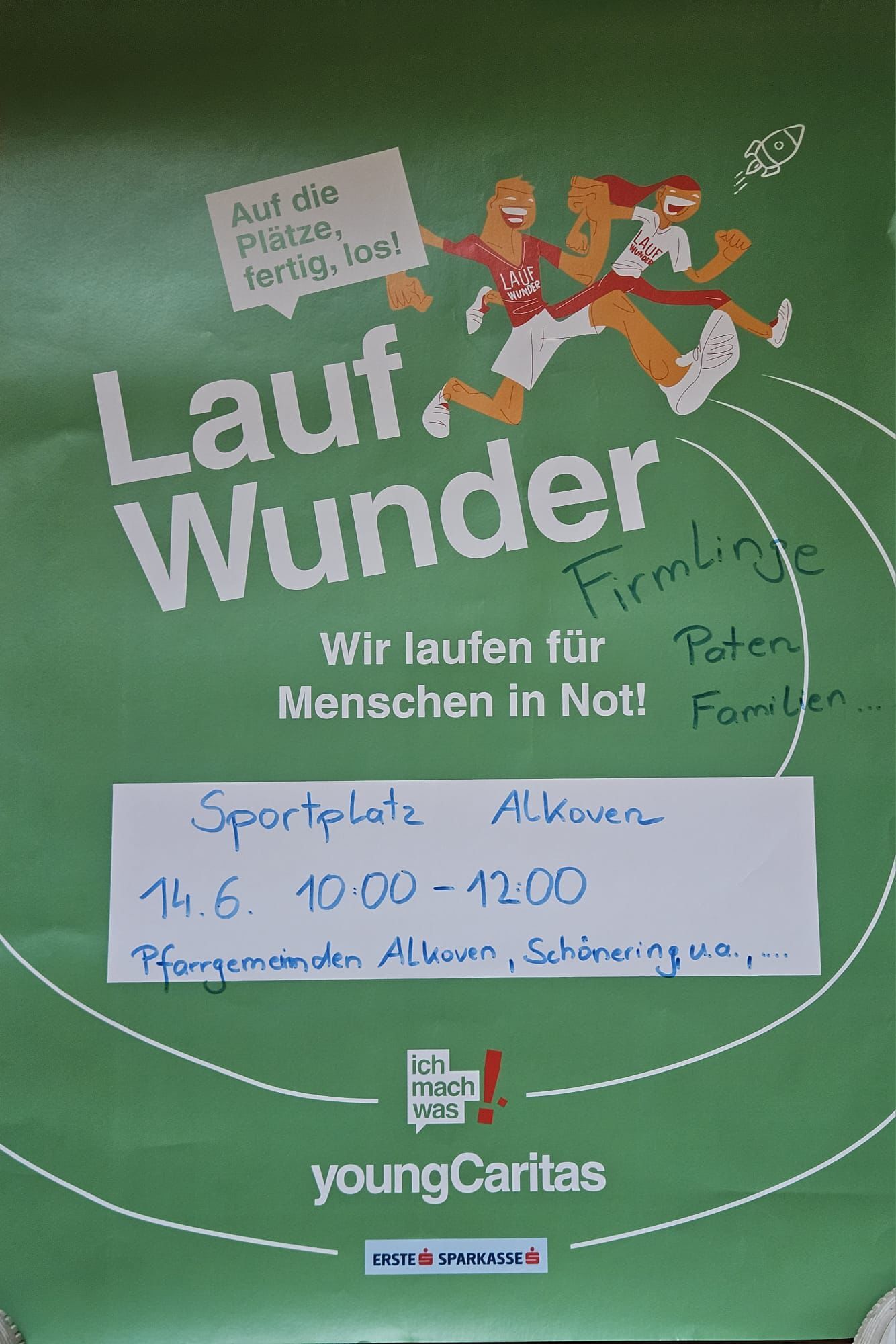 Unsere Firmlinge laufen am Sportplatz in Alkoven für den guten Zweck! Sponsoren sind eingeladen, die Jugendlichen und die Projekte der youngCaritas im In- und Ausland zu unterstützen!
