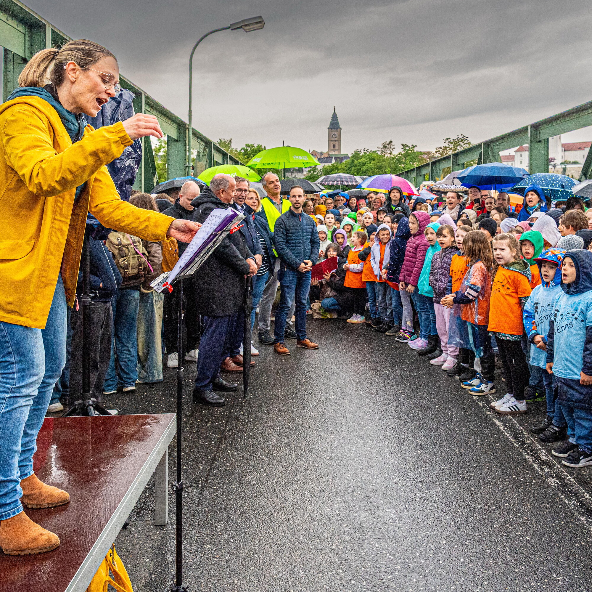 FOTOS - Fest für den Frieden 8. Mai 2025, auf der Ennsbrücke. Anläßlich 80 Jahre Kriegsende nahmen über 1000 Menschen und 8 Chöre mit Musiker*innen an diesem großen Fest, das vom Mauthausenkomitee organisiert wurde, teil. mehr: FOTOS - Fest für den Frieden