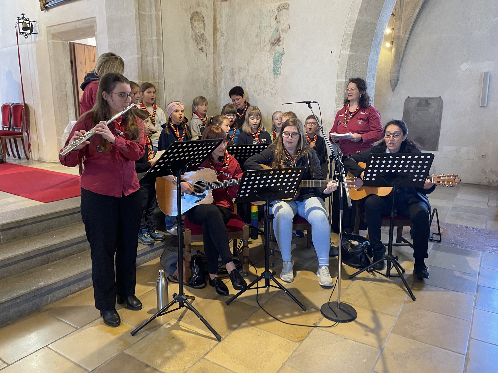 Die jüngsten Pfadfinder:innen - die Wichtel und Wölflinge haben zum Thema "Schätze in unserem Leben" den Georgs-Gottesdienst gestaltet. Mit großem Engagement und sichtbarer Freude haben sie die vorbereiteten Bußgedanken und Fürbitten vorgelesen und die in den Heimstunden geprobten Lieder gesungen.