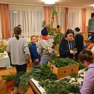 Zahlreiche Besucher nahmen das Angebot der Pfarrgemeinde St. Severin zum gemeinsamen Adventkranzbinden war. Neben professionell anmutenden Adventkränzen gab es noch Türkränze, Gestecke mit Rindenstücken und weitere beeindruckende Kreationen. Sogar einige Interessierte ohne Vorkenntnisse konnten mit wundervollen Ergebnissen die Bastelrunde verlassen.