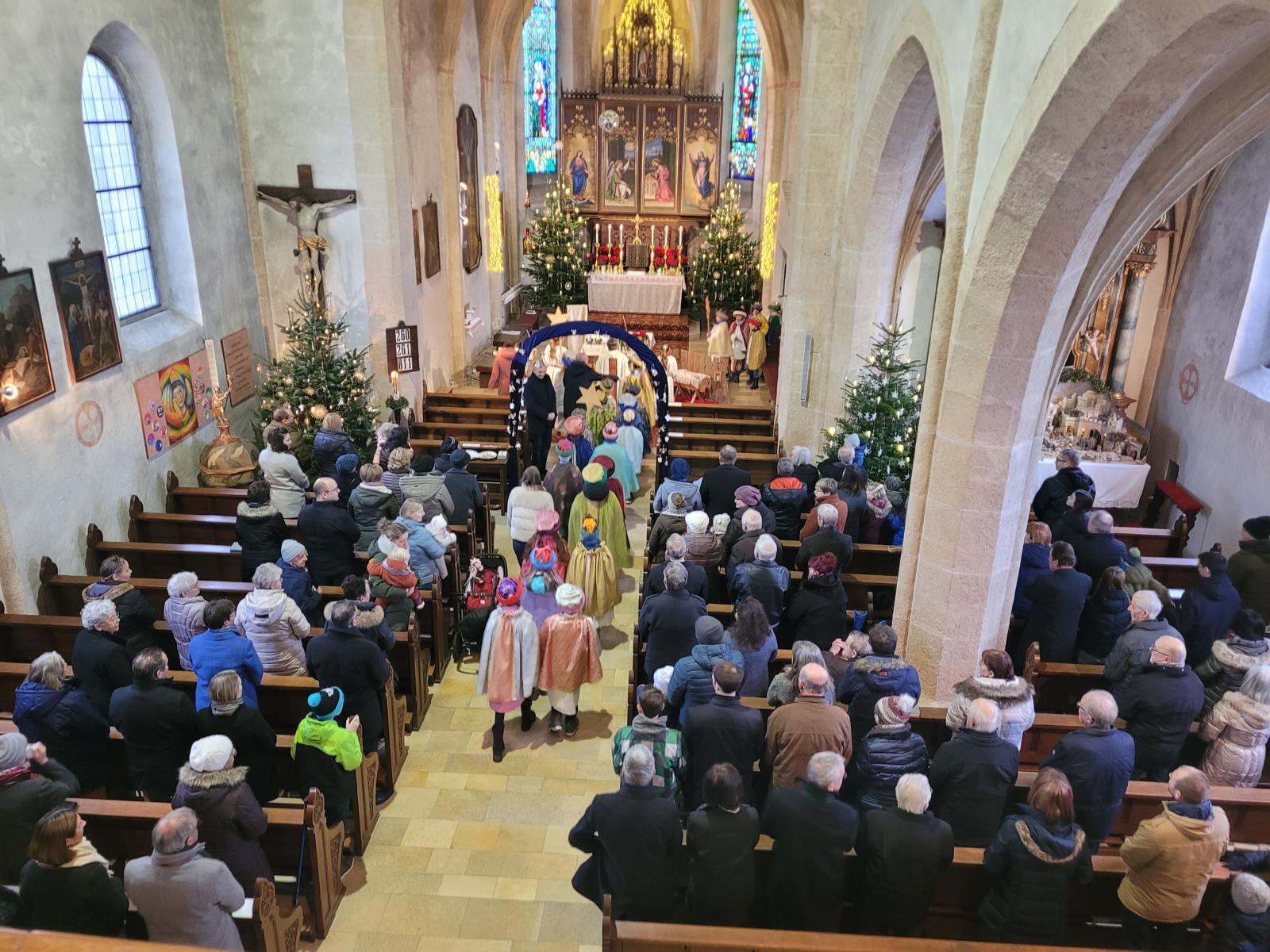 Am Montag, 6. Jänner 2025 fand um 9.45 Uhr das Dreikönigshochamt statt. Einzug und Auszug gestalteten die 40 Sternsinger-Kinder mit dem traditionellen Dreikönigslied und dem Halleluja-Ruf. Pfarrer Alois Hofmann bedankte sich besonders beim Organisator Harald Richter für seine unermüdliche Arbeit und sein umsichtiges Agieren bei dieser großen Sammelaktion.
